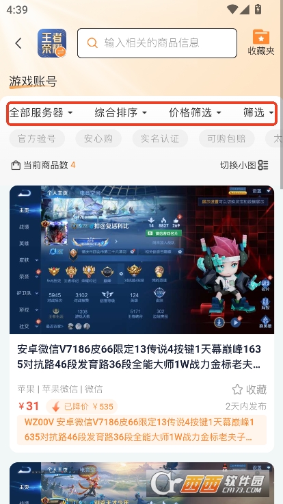 3、精准化账号筛选:用户能够通过游戏名称、账号等级、价格区间、发布时间、是否带皮肤等多种条件组合筛选目标账号,快速锁定心仪账号,节省了搜索时间,提升了用户的账号查找效率,让账号选购更加便捷高效。