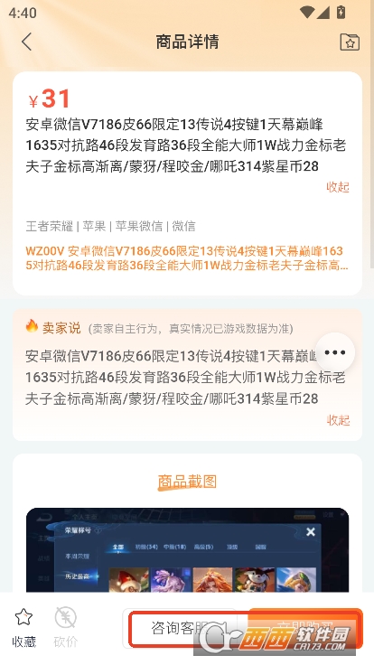 3、AI智能估价服务:内置的AI智能估价引擎可依据账号等级、战力、装备、皮肤数量、登录频率等多方面因素进行综合评估,为卖家提供合理的定价建议,有效提升成交效率,帮助卖家更合理地定价账号,减少定价困扰。
