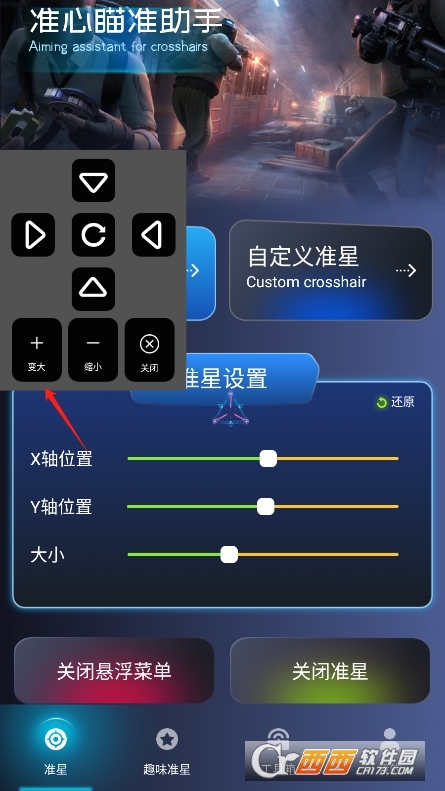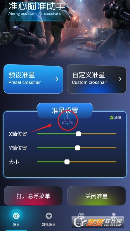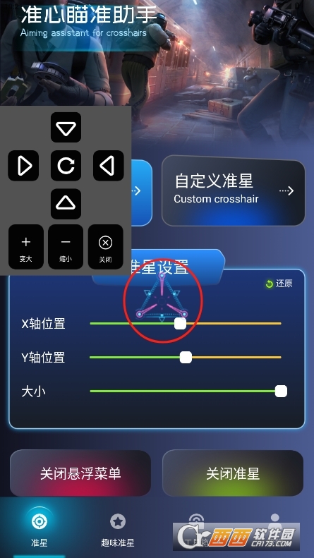 准心样式丰富,有圆点、十字、箭头等多种形状,颜色也能自由选择,比如红色、绿色、黄色等,确保在不同游戏场景下都能清晰可见。操作简单,打开软件后点击 “开启准心”,准心就会出现在屏幕上,拖动可微调位置,长按可关闭。