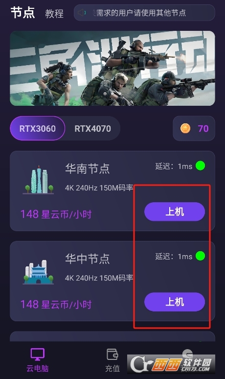 3、支持选择不同的云电脑节点