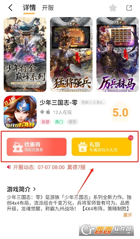 3、可以点击感兴趣的游戏详情页面,领取福利礼包