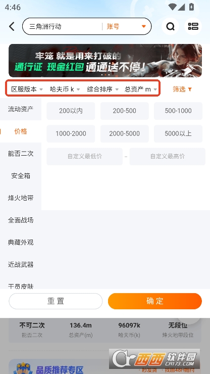 2,通过道具关键词,价格,区服等条件进行筛选排序