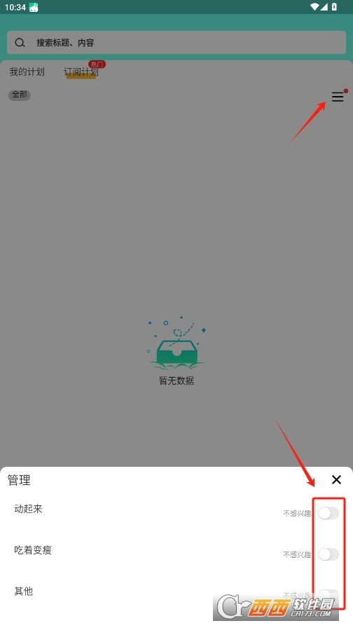 点击右上角的三横线按钮,然后打开你感兴趣的计划类型开关
