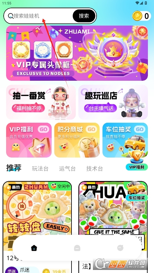 进入主页你可以搜索你想要玩的娃娃机,也可以直接下拉挑选