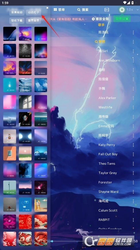 然后点击左上角菜单中的动态粒子按钮,将其切换成无特效状态即可