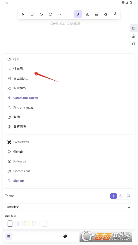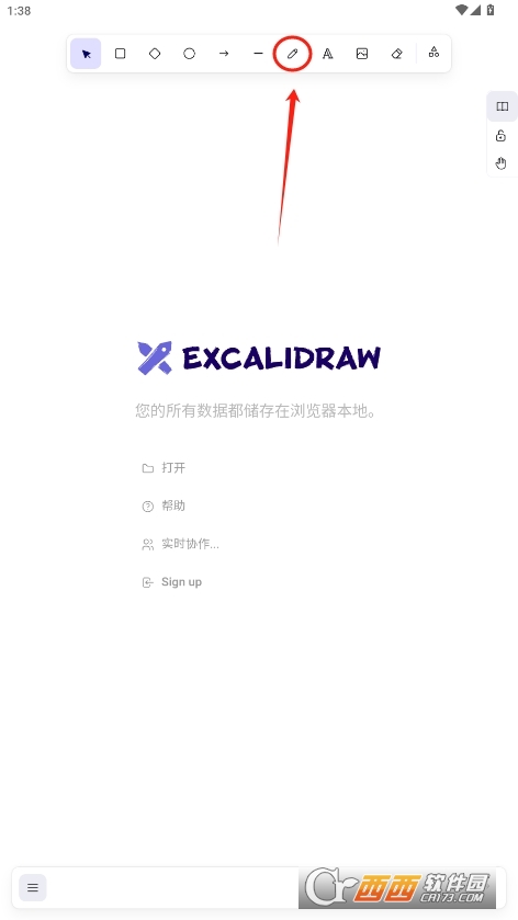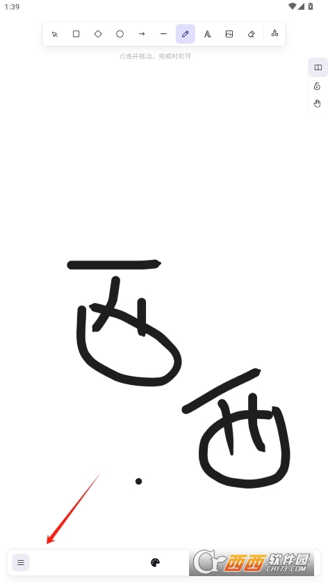 进入软件我们点击最上方一行的画笔按钮即可来到画布开始绘画