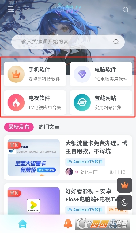 2、点击查看丰富的软件合集,涵盖了手机栏目、电脑栏目、电视栏目以及最新网站分享等内容