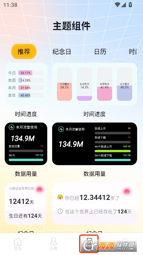 整合头像、表情包、主题组件等资源,头像涵盖动漫、真人、卡通等风格,表情包有搞笑、萌系、搞怪等类型,主题组件包含时钟、天气、日历等,用户无需切换多个应用,在一个平台就能完成手机全方位的美化搭配。