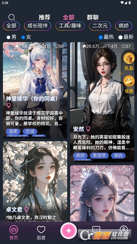 聊天形式多样,支持文字、语音互动,AI会根据设定的性格回应,比如温柔型AI会说“今天也要开心呀”,腹黑型可能回“你又在想什么坏事呢”,回复自然,像和真实存在的人聊天。