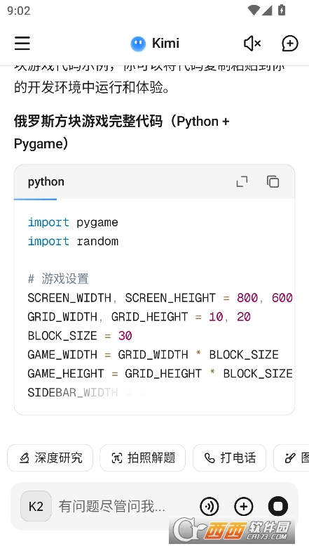 KimiAI智能助手app下载是一款便捷实用的多功能AI助手软件,无论是各领域写作还是PPT创作都能快速完成,提供毫秒级响应的AI互动对话,提供深度研究,拍照解题,语音对话,图文创作,中英互译,常用语解答等多种功能,支持文本语音,拍照与本地上传文档和音频文件进行分析解答,为用户提供专业高效的AI功能辅助。