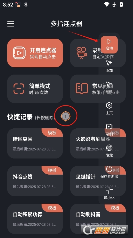 完成后会在屏幕上出现数字标识,你可以拖动它改变点击位置,完成后点击悬浮窗上的启动按钮即可开启连点功能