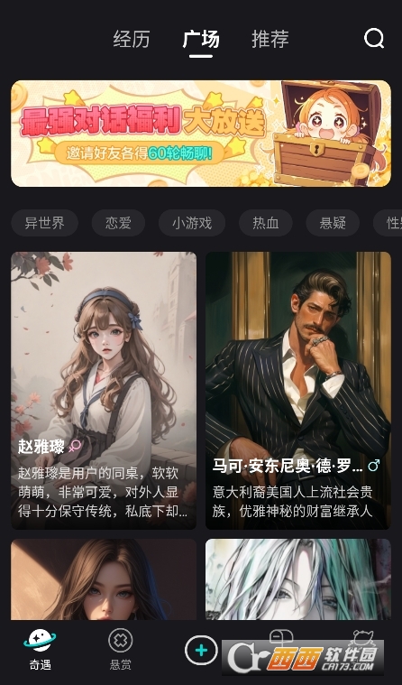 场景与功能结合,体验维度丰富:在2D异世界场景中展开聊天,搭配情感陪伴与创意创作功能,实现了场景氛围与实用功能的结合。用户既能在虚拟场景中获得沉浸式社交体验,又能通过情感陪伴缓解压力,借助创意创作功能激发灵感,体验维度远超普通聊天工具。