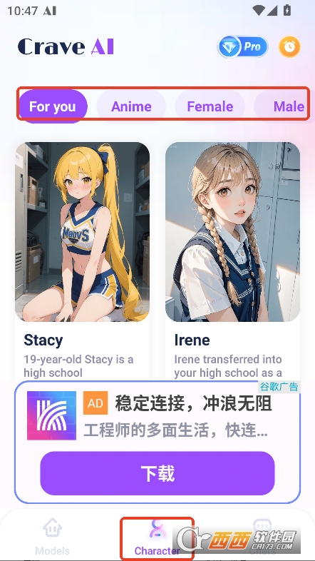 CraveAI官方最新版下载是一款主打AI虚拟角色聊天互动的在线平台,内置丰富的虚拟角色模型,各具特色的虚拟人物设定为用户提供丰富的多样化聊天选择,选择感兴趣的人物模型即可快速进入聊天互动界面,支持自定义文本进行实时交流互动。内置AI智能助手,能够实时回答各种问题,依靠ChatGPT,deepseek等智能大模型为用户提供高效智能的解答内容。