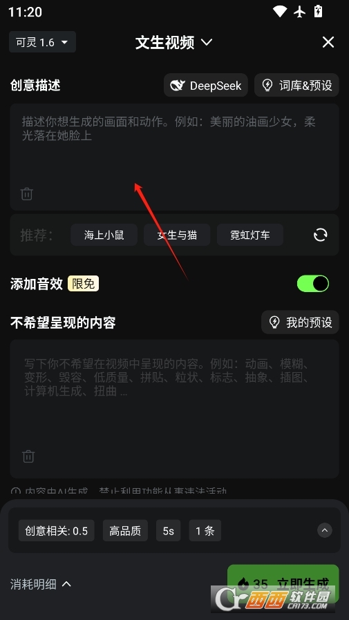 你可以尽情发挥想象力,输入想法让AI生成内容,比如“未来城市的夜景视频”“复古风格的插画”,AI会快速给出结果。也能参考其他创作者的灵感,看看别人怎么用AI做创意,跟着学或者举一反三,让自己的创作更有方向,你绝对不容错过。