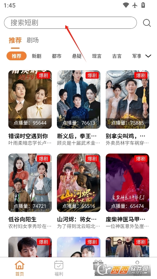 进入软件主页你可以点击搜索框输入关键词来查找短剧