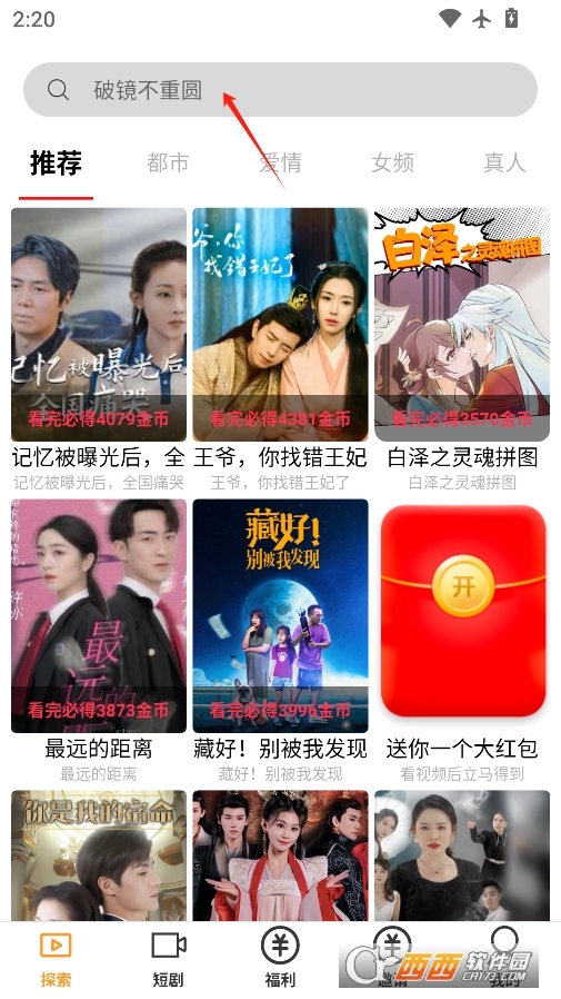 进入软件后可以点击搜索关键词寻找想看的短剧