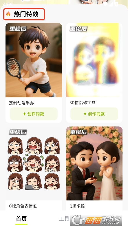 提供的特效覆盖日常高频场景(如社交分享、个性化装饰),像二次元透明立牌、Q版角色、节日滤镜等,风格鲜明且贴近大众审美,能快速满足用户“让图片变好看/有趣”的核心需求。