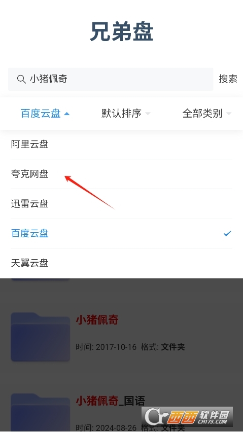 输入关键词即可搜索到资源,我们点击搜索结果处的网盘分类