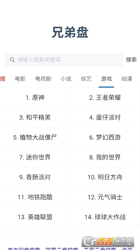 兄弟盘是一款提供专业网盘资源搜索服务的工具,用户在这里能更好地搜索自己想要的资源。不管是找影视、小说,还是游戏,各种类型的资源都能找到,轻松获取对应的资源链接,不用再到处求分享,绝对是你手机中的必备神器。