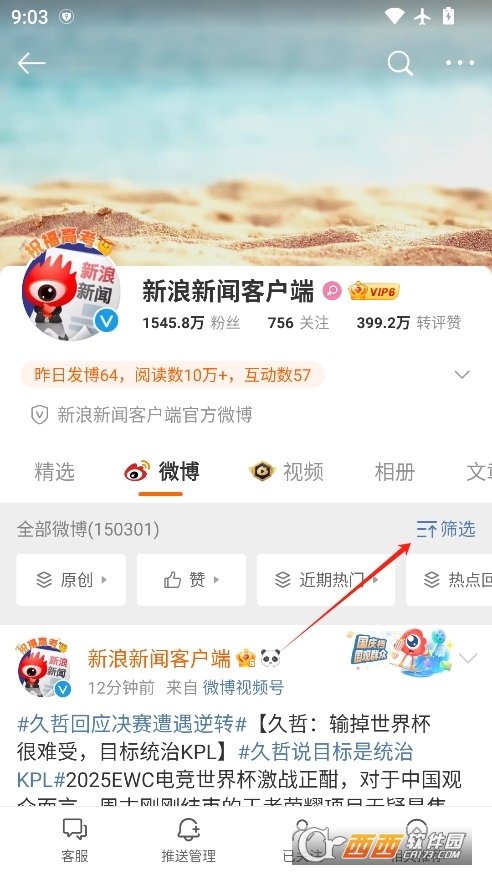 进入到他的主页之后,点击筛选按钮