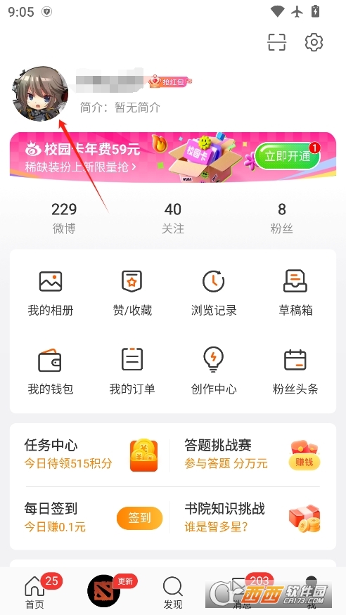 点击一下自己的头像