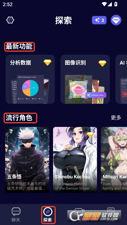 2,探索栏内置了多样化的热门流行虚拟角色聊天