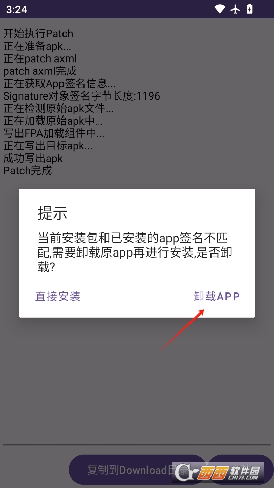 如果出现弹窗提示,点击卸载原应用文件后再安装