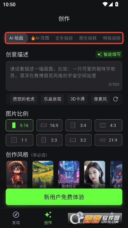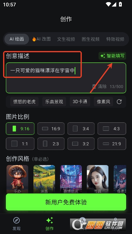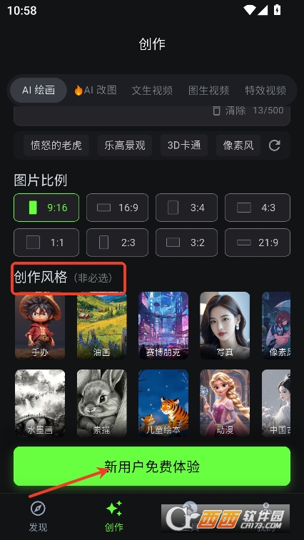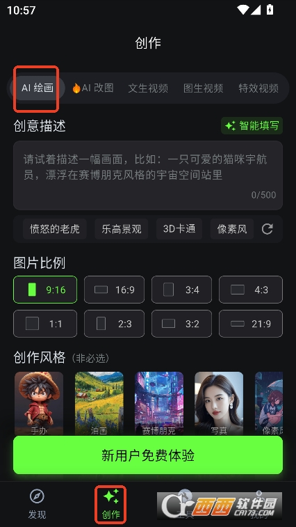 1,进入创作栏第一个就是AI绘画功能