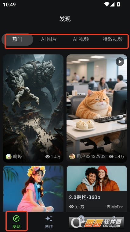 1,首页发现栏提供最热门的发布素材预览