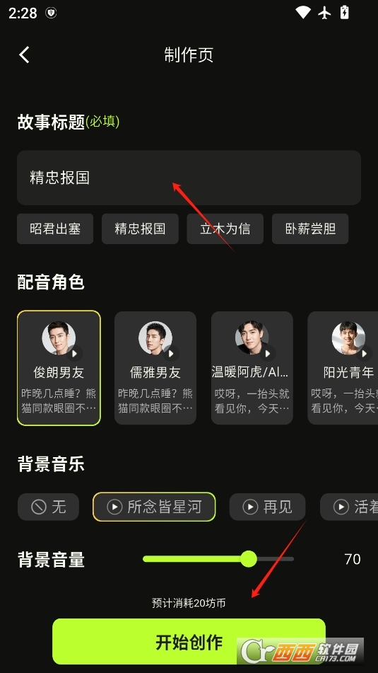 在创作版块寻找自己喜欢的模板