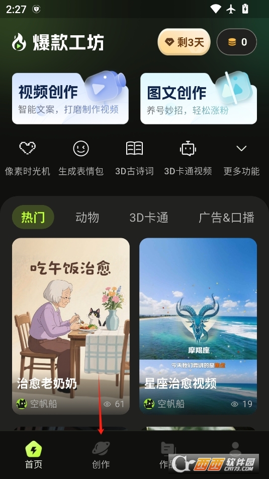 进入软件后点击下方的创作版块