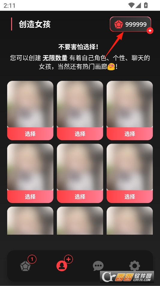 进入软件可以看到右上角已经为大家解锁了无限钻石