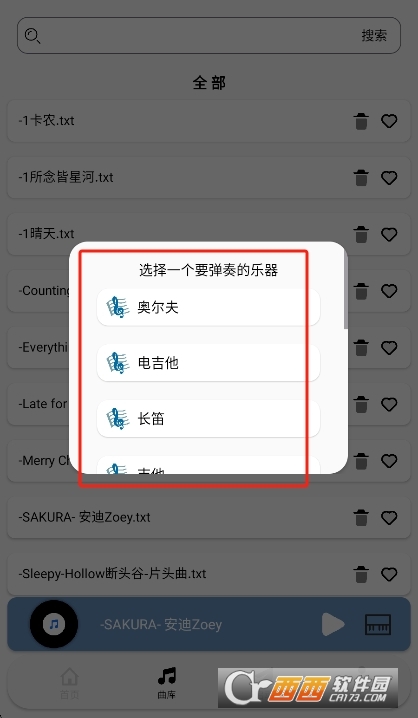 2、点击乐器类型,包括电吉他、长笛以及更多类型