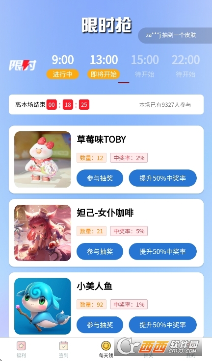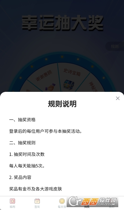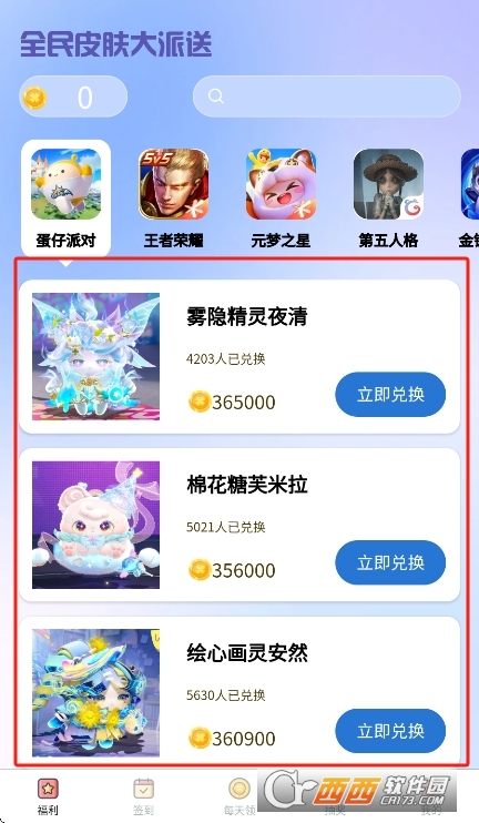 3、抽奖与兑换功能:提供抽奖功能,玩家可消耗一定数量的金币参与抽奖,有机会获得皮肤、皮肤碎片或更多金币;设有兑换商城,玩家可使用积累的金币或皮肤碎片兑换《王者荣耀》《和平精英》《蛋仔派对》等游戏的皮肤,兑换时只需输入游戏账号信息,即可完成兑换流程。