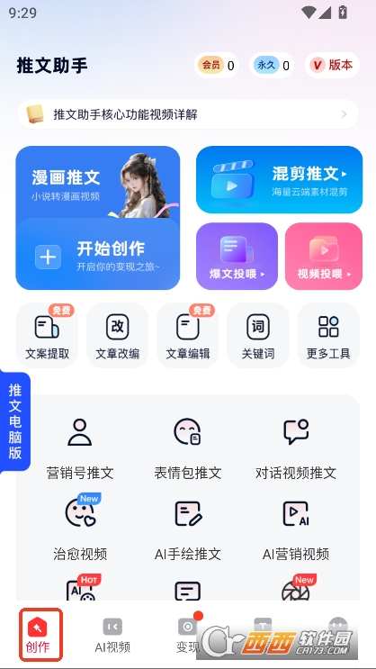 1,首页提供丰富的推文创作助手选择