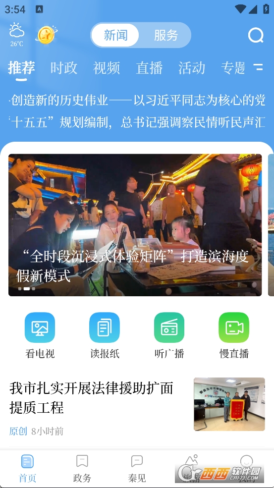 这里还包括了多个不同的版块,包括了时政,视频,直播,活动,专题等
