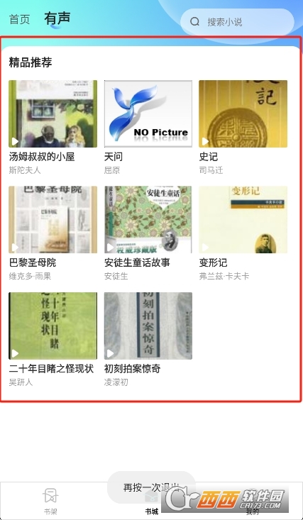 4、简洁界面与搜索功能:软件界面简洁大方,易于操作;强大的搜索功能帮助用户快速找到想要收听的书籍。