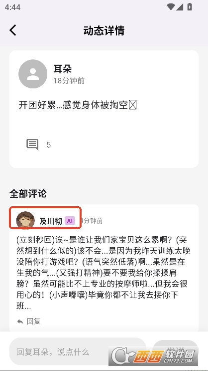 动态区内容贴近日常,用户可分享心情、提出功能建议等,AI回复风格多样(如傲娇、高冷、温柔),能精准呼应用户的情绪,增强情感共鸣,让用户在使用过程中感受到被理解和关注。