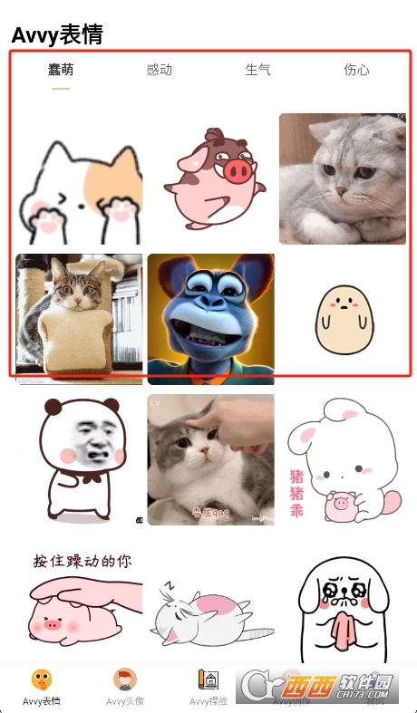 2、趣味表情包: 应用内有各种各样的趣味表情包,支持一键下载,让用户能够方便地在社交平台使用这些表情。