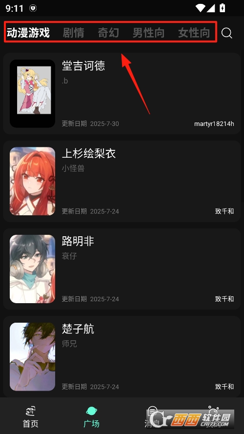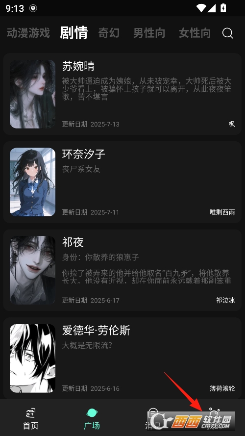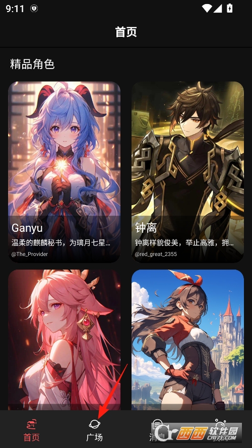 进入软件首先注册登录账号,来到主页即可看到各种精选角色,我们点击下方广场