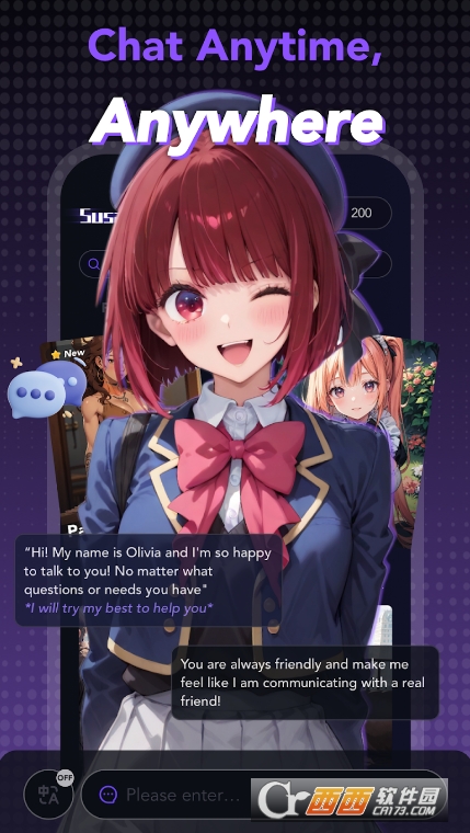 在这里,你可以和AI角色开启个性化对话,它们有自己的脾气和想法,不是冷冰冰的回复机器。聊得投缘了,还能一起投入动漫主题的冒险,跟着剧情去探索奇幻世界,就像亲身参与了一部动漫故事,喜欢的话不妨来西西下载哦。