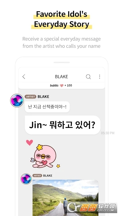 1、偶像日常故事: 用户每天可以收到一条特别的信息,这些信息仿佛是艺术家直接呼唤你的名字发送的,让你感受到与偶像的亲密联系。