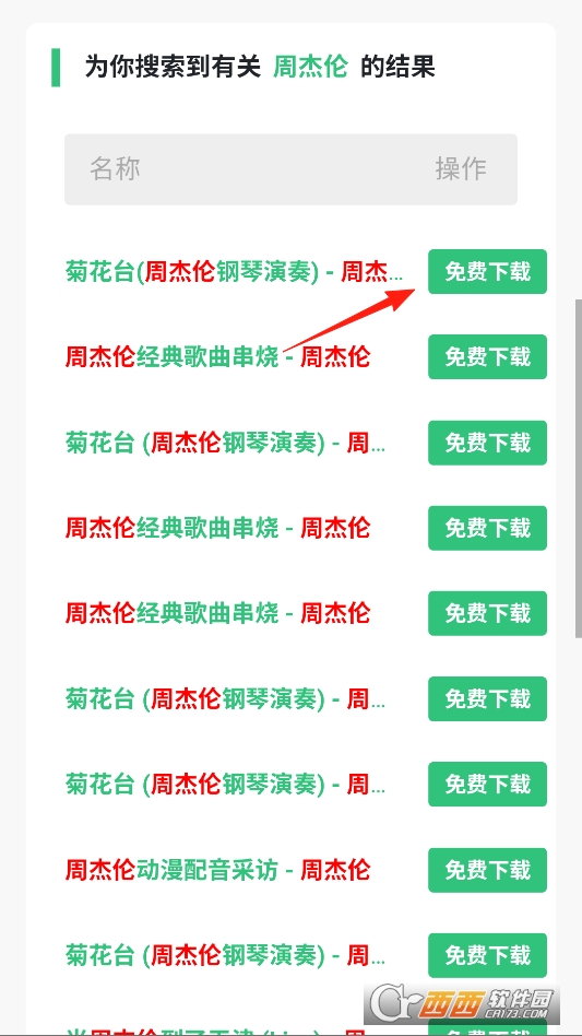 在搜索结果列表中找到想要下载的歌曲,点击其右侧的免费下载