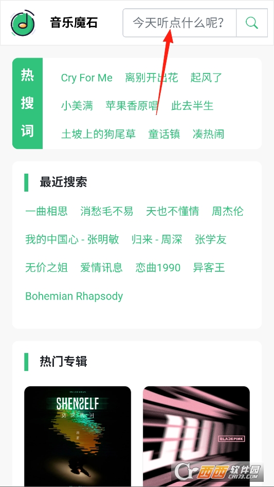 进入软件主页之后点击上方搜索框,输入关键词开始搜索歌曲