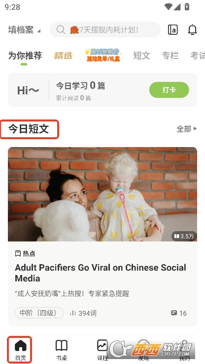 个性化学习规划:依据用户词汇量智能推荐适配难度的阅读材料,满足不同水平学习者需求。阅读时,系统自动高亮重点单词、四六级及考研等各类考试的难点单词,方便用户查缺补漏;同时,用户可即时将生词添加到专属学习计划,借助扇贝强大记忆系统高效学习。