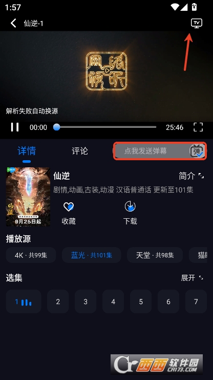 3,点击剧集即可在线播放,弹幕互动与投屏