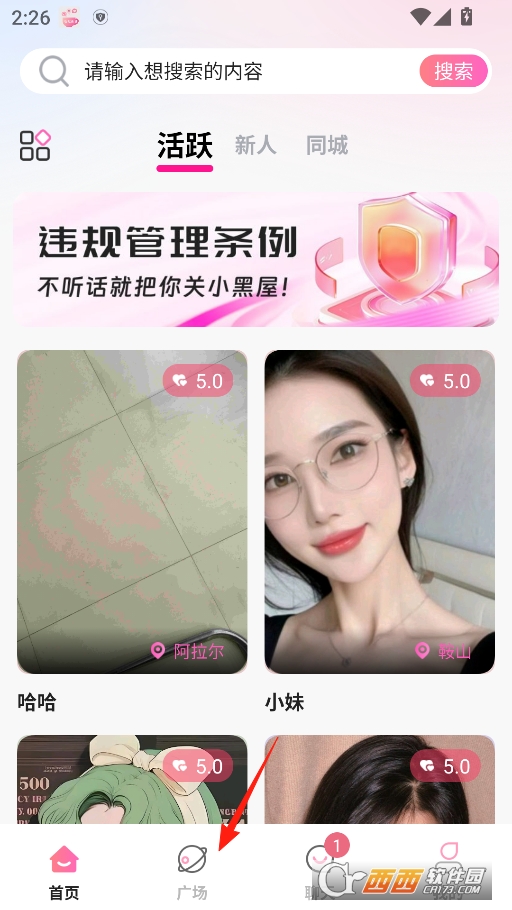 正式来到主页可以点击下方的广场版块
