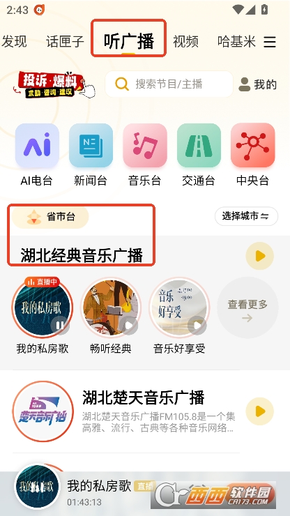 1,首页提供当地的省市台广播频道