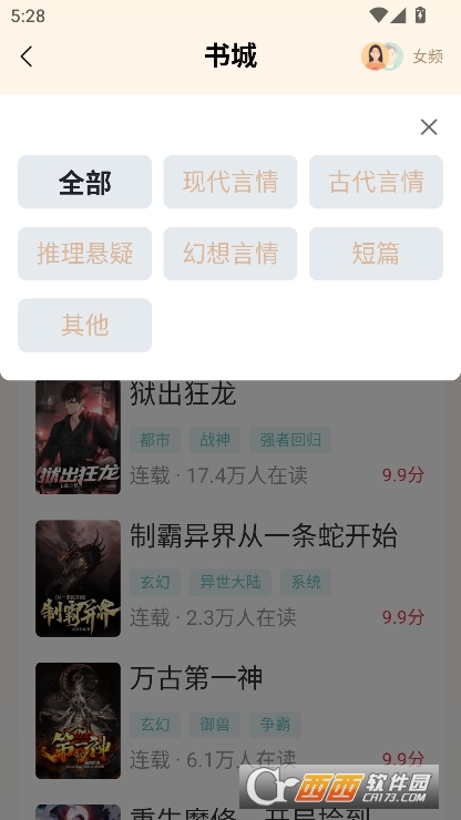 2,可通过书城题材进行筛选分类