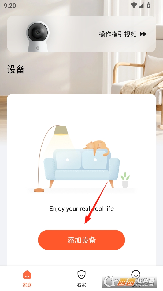 首次使用软件注册登录后进入主页,点击主页下方的添加设备